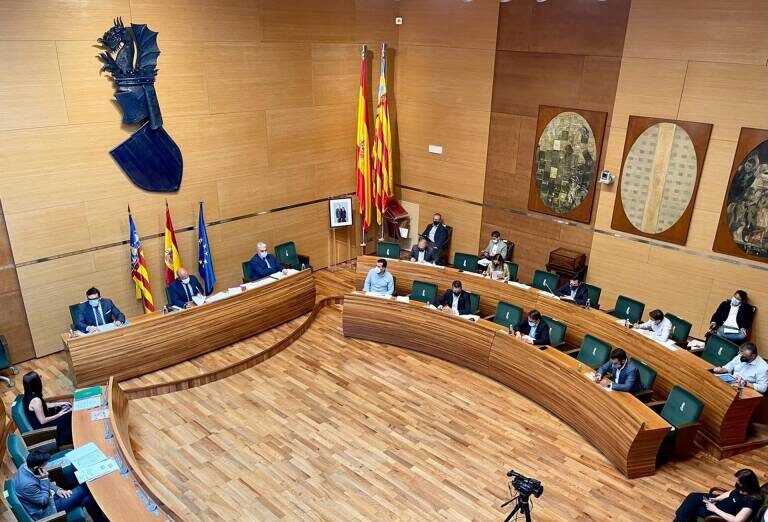 La planta es prácticamente rectangular, con unas dimensiones de 16m de largo por 11m de ancho. El volumen interior se divide en dos partes, una zona donde se sitúan los consellers y una zona de público. La zona de público se encuentra dividida en dos alturas, formando un anfiteatro en la planta superior.